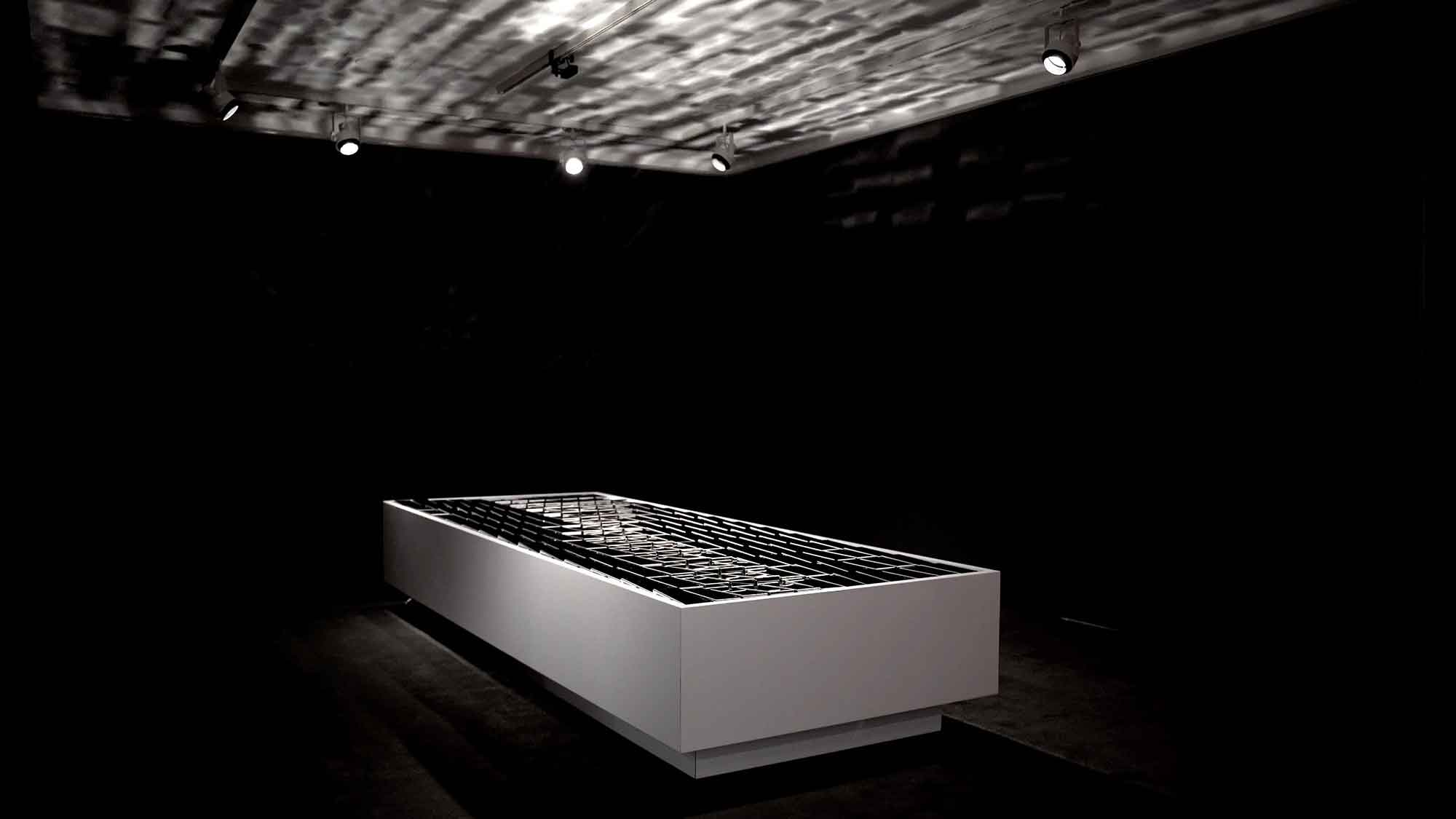 The aesthetic results are magnetic. Awaken, executed at Empire Stores, Brooklyn in 2019, is a resplendent stainless mirror made of 168 Brixels that follow and translate human movements into a fluid-like tech replica of themselves, re-establishing our link to technology. “Pool’, unveiled at Christie’s in New York, digs into the relationship between machine and nature: the reflective water movements are reproduced into ripples across the surface of the artwork, echoing the flowing variations of water.