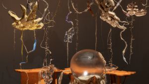Her most recent piece, Lichen in Love, is a speculative scenario where lichens – plant-like, algae-fungus composite organisms – are presented as a friend and subject of fascination in relation to humans. The work includes both a series of designed objects as well as a collection of love letters addressed to species of lichen. The imagined objects (a protective glass, a breathing tube, a photosynthesis mirror, and a scientific balloon) provide new ways for human-nonhuman engagement.