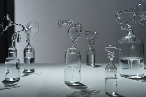 The reason why CHIJIKINKUTSU and CHOZUMAKI seem so minimal is [because] I’m presenting materials such as water, glass tumblers, sewing needles, etc., and [phenomena such] as geomagnetism and vortexes, and sounds such as glasses [clinking] and [the movement of] water, just [the way they are all found in nature]. I don’t follow the surrealistic approach, like the [presentation of] impossibles, nor the cinematic method of montages; I didn’t express any narratives there.
